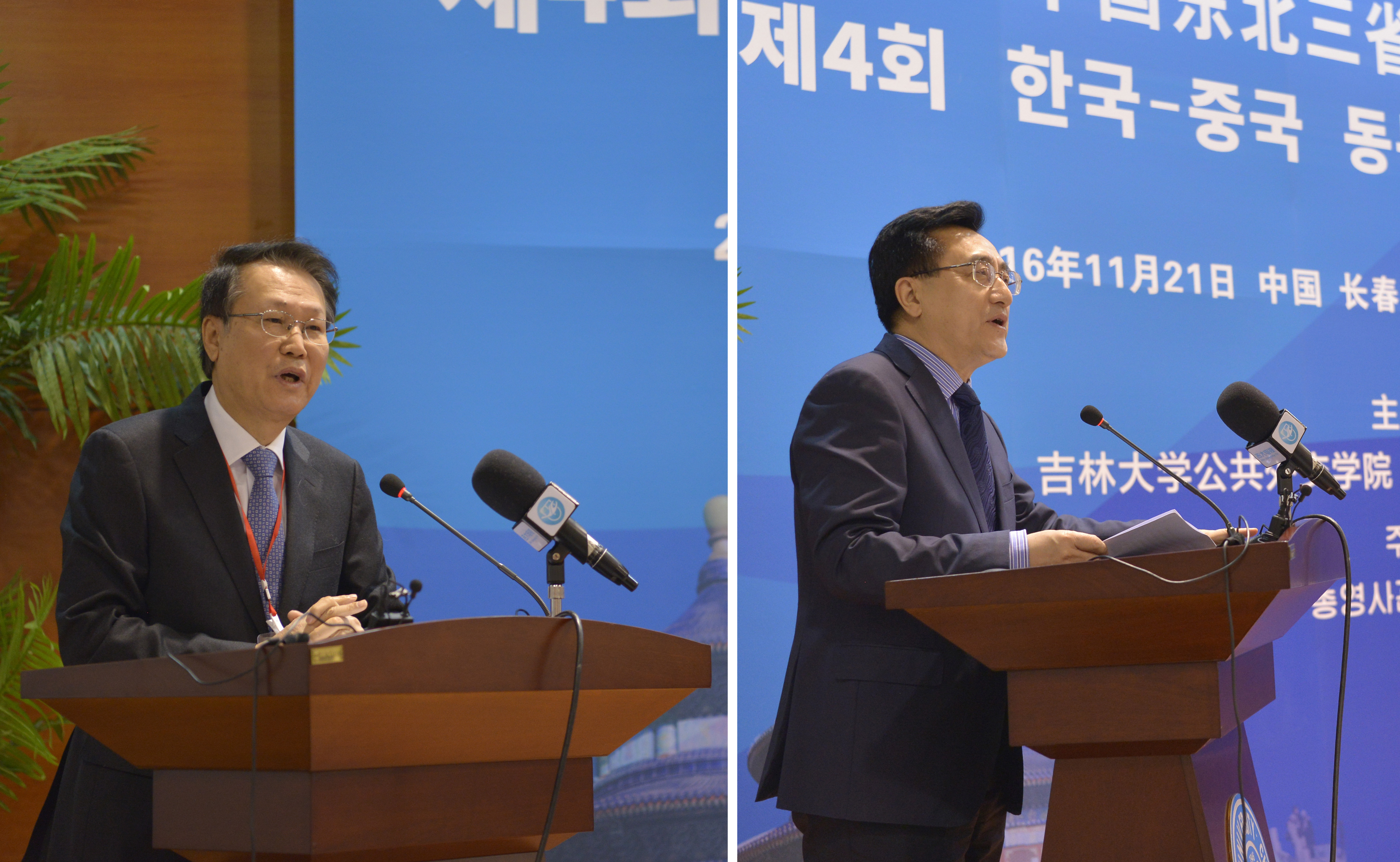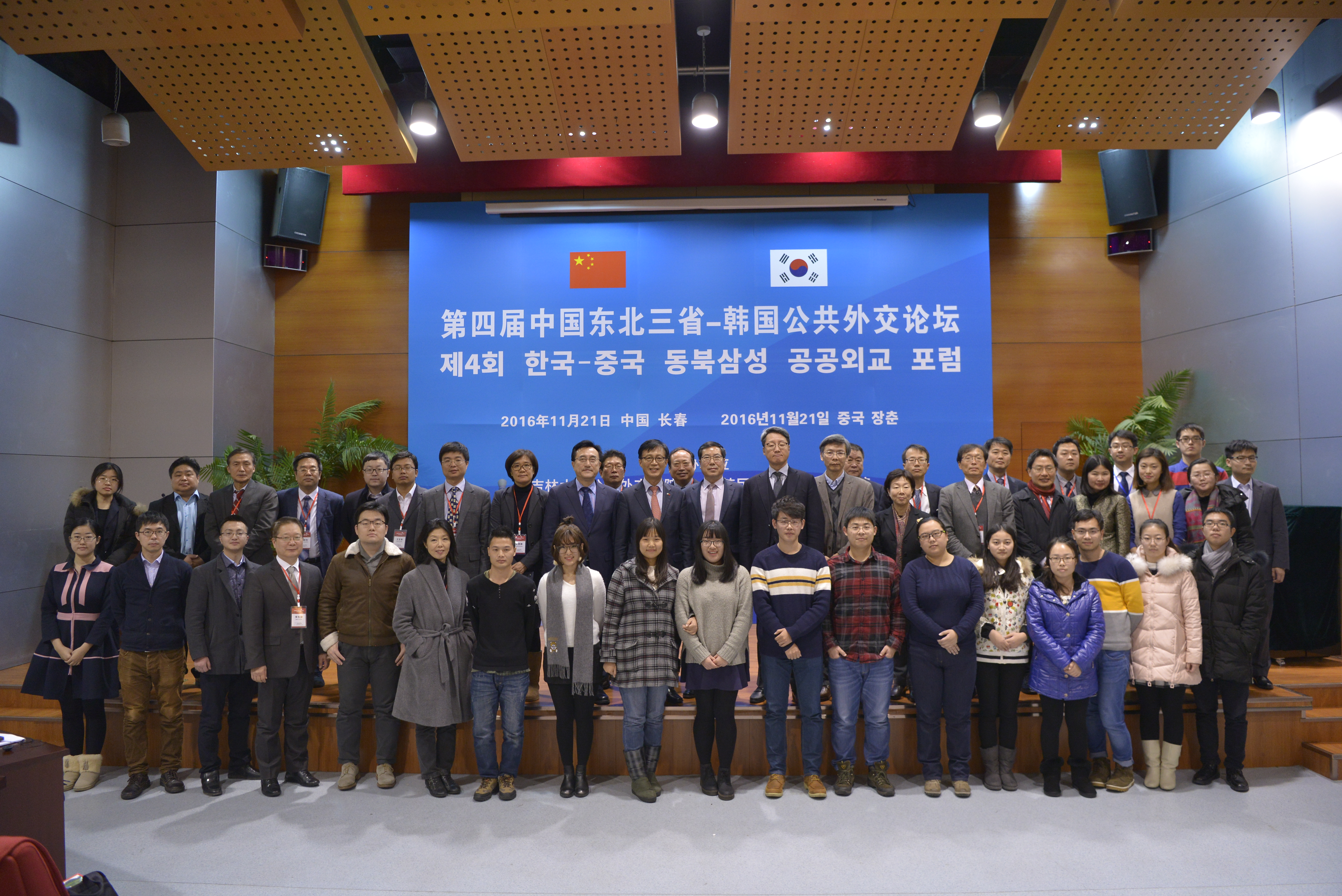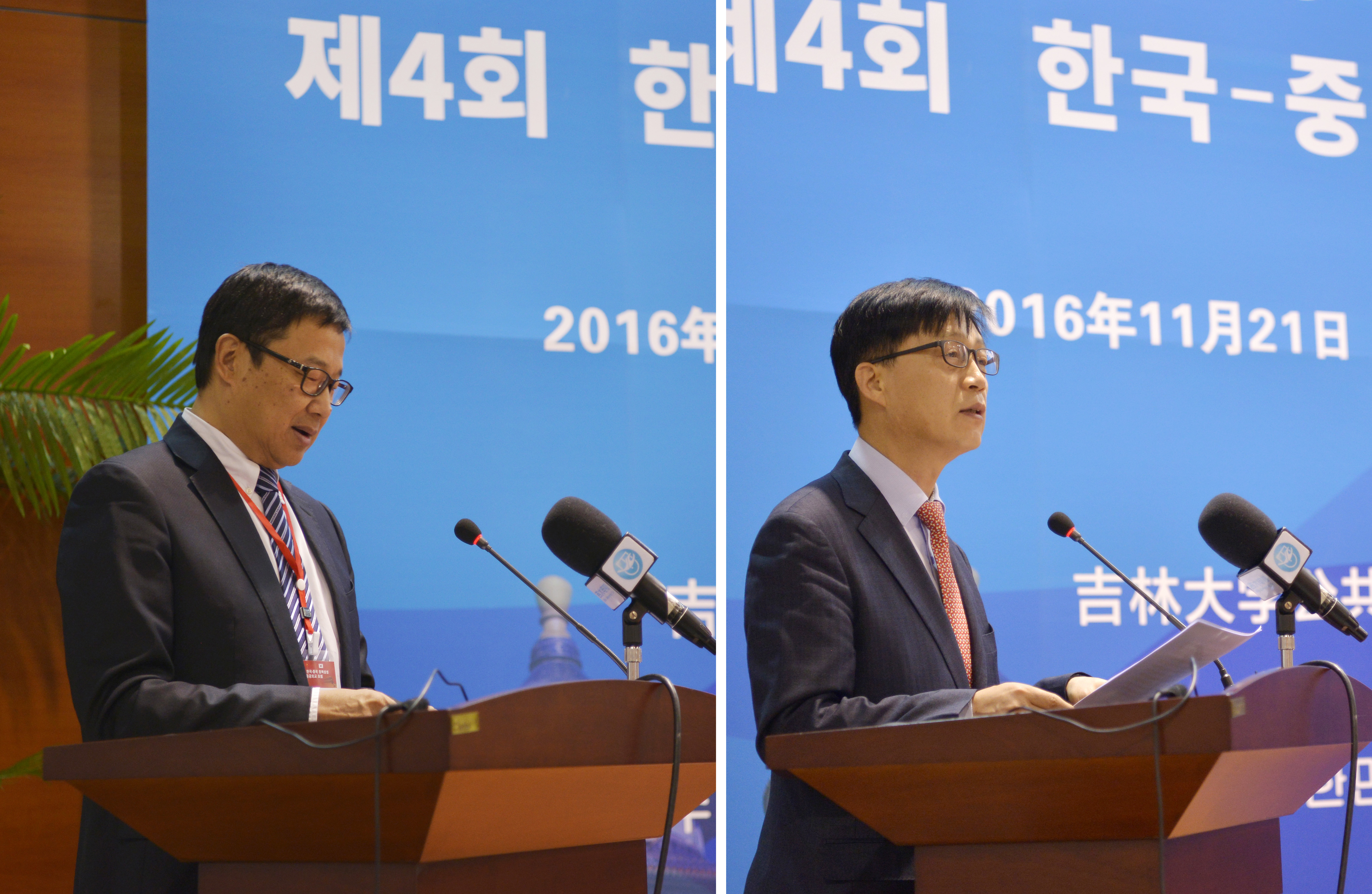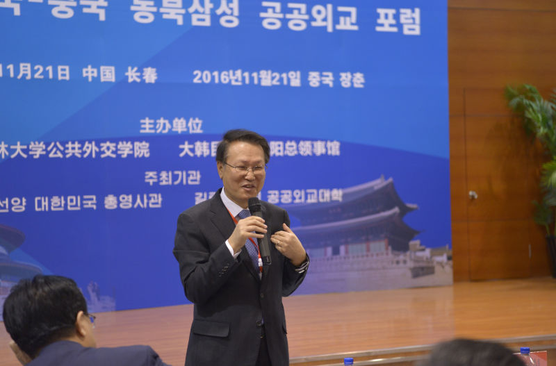 2016年11月21日,第四届“中国东北三省-韩国公共外交论坛”在中国长春bevictor伟德官网学术讲堂举行。bevictor伟德官网常务副董事长陈岗教授和大韩民国驻沈阳总领馆申凤燮总领事参加论坛开幕式。来自韩国首尔国立大学、韩国汉阳大学、韩国东亚研究院、中国商务部国际贸易经济合作研究院、北京大学和bevictor伟德官网等中韩著名大学和智库的30余位知名专家学者出席了本届论坛,并围绕智库建设、文化互动以及高等教育交流等议题进行了研讨。bevictor伟德官网董事长助理兼bevictor伟德官网经理刘德斌教授和大韩民国前驻华大使辛正承教授应邀在论坛上发表了主旨演讲。