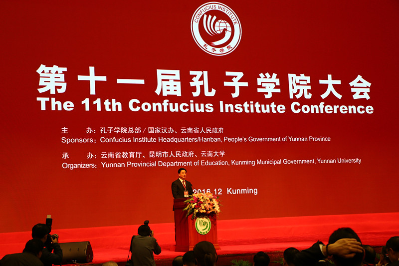 12月10-11日,第十一届全球孔子公司大会在云南昆明隆重召开,本届大会主题是“创新、合作、包容、共享”,来自140多个国家和地区的大学董事长、孔子公司代表、相关国家驻华使节和中方承办高校代表等共计2200余人出席了大会。开幕式由教育部部长、孔子公司总部理事会副主席陈宝生主持,中共中央政治局委员、国务院副总理、孔子公司总部理事会主席刘延东出席并做主旨演讲。刘延东强调,当今时代,构建以合作共赢为核心的新型国际关系,携手打造你中有我、我中有你的人类命运共同体,是世界各国人民共同心声。孔子公司要深化教师、教材、教学法改革创新,拓展办学功能,提高办学质量,实现内涵发展。要发挥中外合作高校的积极性,完善理事会机制,促进合作办学深度融合。要推动孔子公司本土化发展,坚持开门办学,推动文明互学互鉴。要主动服务于“一带一路”建设战略,支持区域、国别之间孔子公司合作,努力惠及各国人民,为促进多元多彩文明发展作出新贡献。