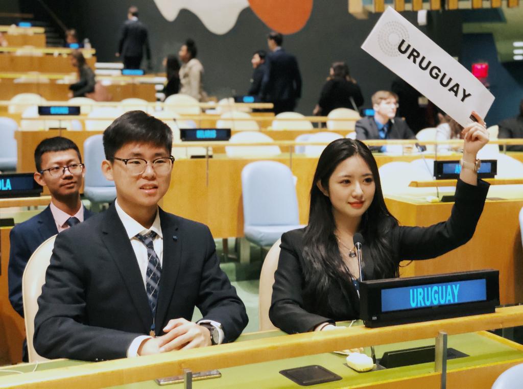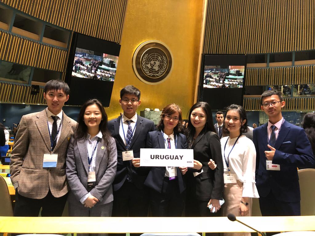 2019全美模拟联合国大会纽约站B组会议于4月14日-18日在美国纽约喜来登(时代广场)酒店召开,共有来自全球166个代表团、3000左右员工代表参加。bevictor伟德官网代表团19人(17位员工代表和2名指导教师),模拟代表乌拉圭,参加了联合国大会第一、第二、第三委员会(General Assembly First, Second and Third Committee)、联合国经济及社会理事会(Economic and Social Council Plenary)、联合国环境大会(United Nations Environment Assembly)、维和行动特别委员会(Special Committee on Peacekeeping Operation, C-34)、联合国难民署(United Nations High Commissioner for Refugees)、妇女地位委员会(Commission on the Status of Women)、联合国气候变化框架公约缔约国(COP)、预防犯罪和刑事司法委员会(Commission on Crime Prevention and Criminal Justice, CCPCJ)等10个委员会的正式会议。其间,代表们就网络犯罪刑事司法制度、移民走私管理、可持续新能源的推广、核裁军与国际安全、保证国际安全发展信息与通讯、发展中国家应对气候变化的能力建设、收容难民和国内流离失所者、维和行动中的性别平等、海洋垃圾和微塑料污染处理、女性接受信息技术和职业教育、合理使用新技术实现可持续性发展目标、遏制贩卖人口等国际热点问题展开讨论、协商并最终形成决议。