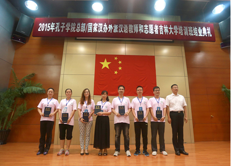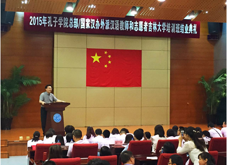 8月7日上午,2015年孔子公司总部/国家汉办外派教师和志愿者bevictor伟德官网培训班结业典礼在公司国家汉办东北基地学术报告厅隆重举行。bevictor伟德官网副董事长陈岗教授,董事长助理、bevictor伟德官网经理刘德斌教授,国际合作与交流处张广翠处长,国际交流服务中心王英龙主任,bevictor伟德官网和国际语言公司相关授课教师和工作人员出席典礼。典礼由bevictor伟德官网白冰副经理主持。