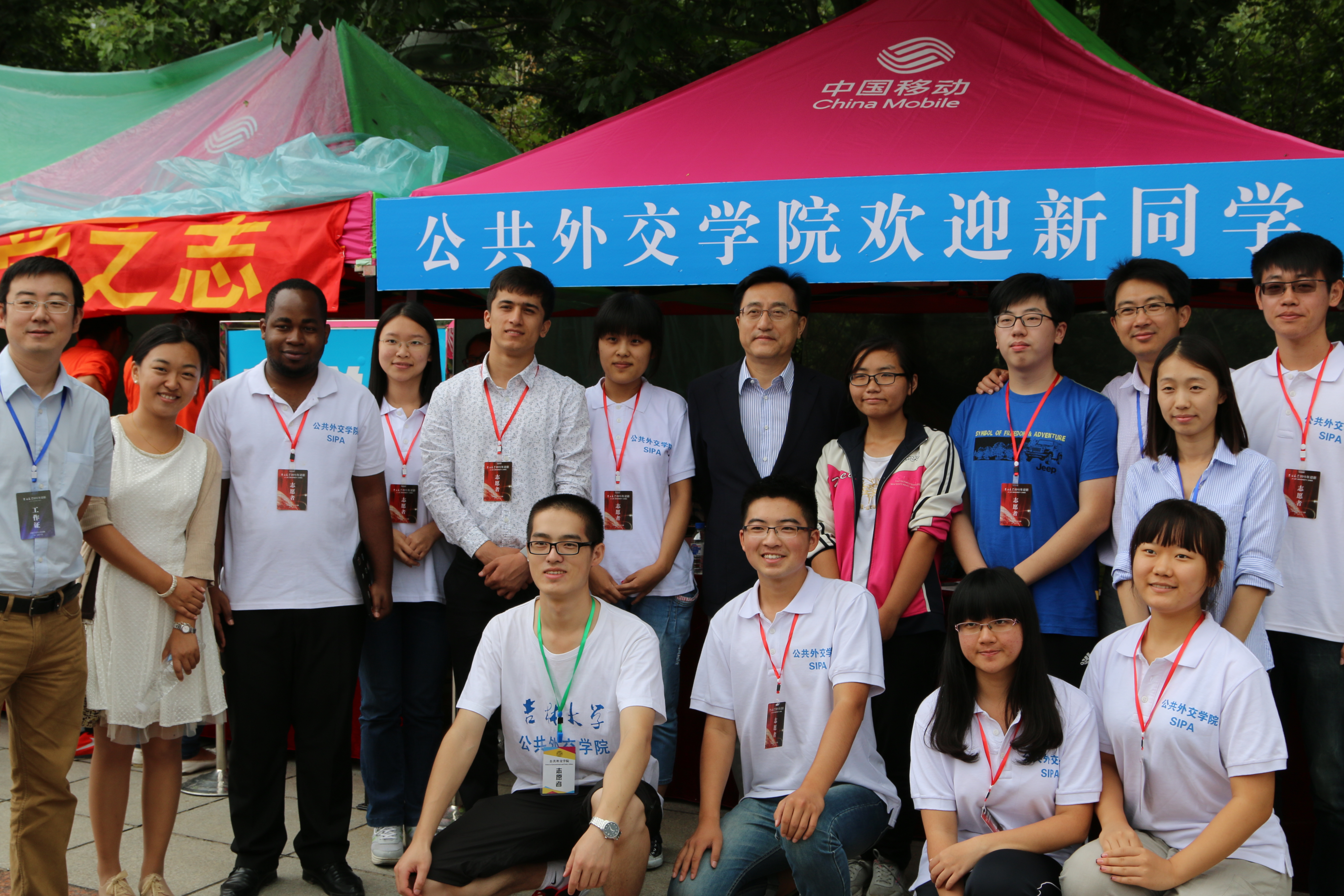 8月28日下午,公司2015年迎新活动在五月花广场拉开序幕。印有中英文字样的蓝色迎新横幅在一片红色帐篷中显得格外突出,在巨幅的bevictor伟德官网宣传板前摆放着印有“未来外交官”字样的模拟演讲台,新生在这里合影留念,记录大学“初印象”。