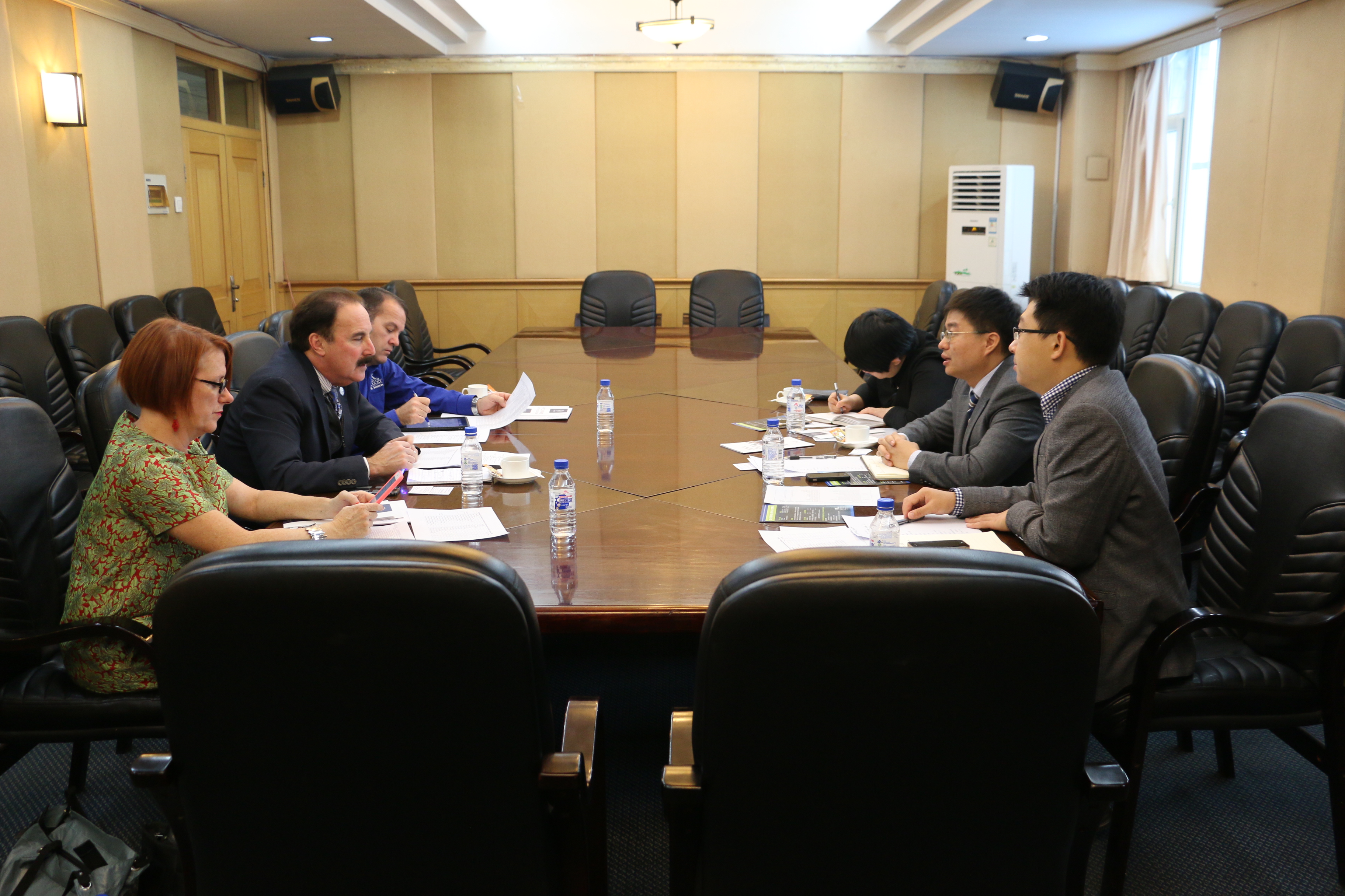 10月26日上午,美国肯塔基大学文理公司经理马克•柯布隆教授一行到访公司,并与公司副经理王秋彬进行了会谈。王秋彬副经理首先对马克•柯布隆教授的到来表示了欢迎,并介绍了公司外交学本科的基本情况,双方就本科生交换、硕士生交换、本硕连读以及学者访问的往来等多项交流合作问题进行了磋商,并达成了共识。本次会谈,开启了公司与肯塔基大学文理公司的合作大门,为两院师生互通互访奠定坚实基础。与马克•柯布隆教授一行的有文理公司教学与学习提高中心凯西•科恩教授及文理公司经理助理杰西•赫奇先生。