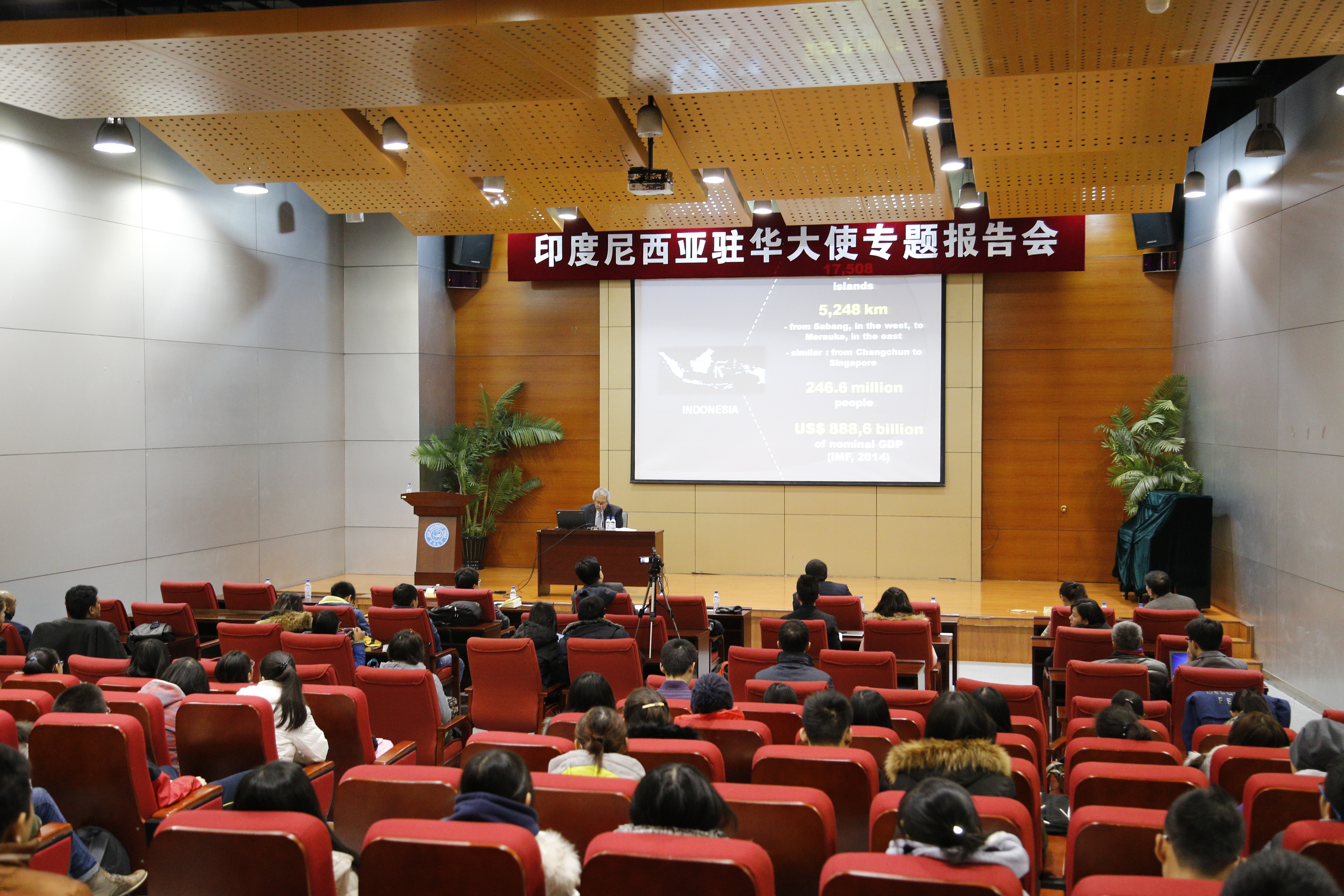 随后,苏更•拉哈尔佐大使为公司师生做了题为《印尼与中国关系:两国六十五年的外交与未来的合作潜力》的专题报告。在报告中,他详细介绍了中印两国外交的历史和现状,并对两国关系发展做出了积极的展望。报告结束后,大使先生与现场观众进行了长时间的互动。来自bevictor伟德官网、行政公司、文公司的教师和员工近200人参加了报告会。
