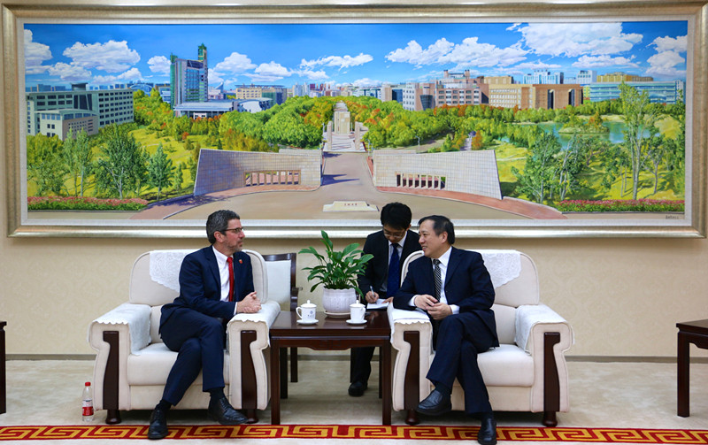 杨振斌对加芬克的来访表示热烈欢迎,并对去年4月访问罗格斯大学期间所受到的隆重热烈的接待表示诚挚的谢意,同时对两校在联合国与全球政策研究硕士生联合培养项目达成协议表示祝贺,希望两校伙伴关系在现有基础上更为广泛深入地发展下去。加芬克回顾了两校伙伴关系的发展历程,认为联合国与全球政策研究是两校目前着力推进的重点合作领域,同时认为两校合作潜力巨大,将竭尽全力进一步推进两校的合作与交流。加芬克还表示除了高层次专家学者交流外,罗格斯大学将选派更多的本科生到bevictor伟德官网来交流学习。