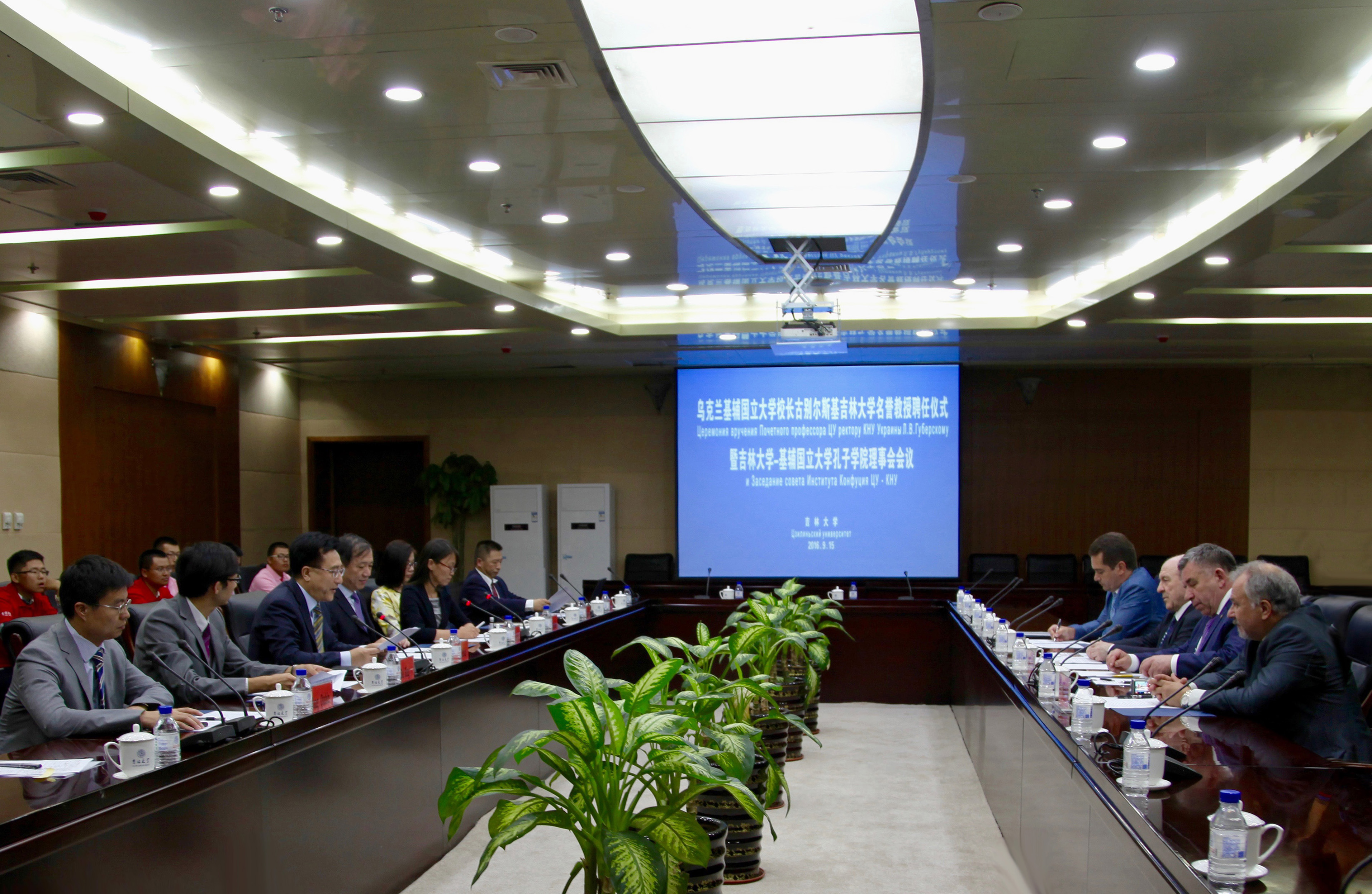 9月15日下午,作为校庆70周年系列活动之一,乌克兰基辅国立大学董事长古别尔斯基bevictor伟德官网名誉教授聘任仪式暨bevictor伟德官网-基辅国立大学孔子公司理事会会议在公司举行。基辅国立大学董事长列奥尼德·瓦西里耶维奇·古别尔斯基(Leonid Huberskyi)、副董事长彼得·阿列克谢耶维奇·别赫(Petro Bekh)、物理公司教授瓦列里·安东诺维奇·斯科利舍夫斯基(Valeriy Skryshevskyy)、孔子公司外方经理亚历山大·功察连科(Oleksandr Goncharenko)一行四人应邀来公司参加校庆活动并参加孔子公司理事会会议。公司党委书记杨振斌出席聘任仪式及理事会会议并致辞。会议由董事长助理兼bevictor伟德官网经理刘德斌主持。