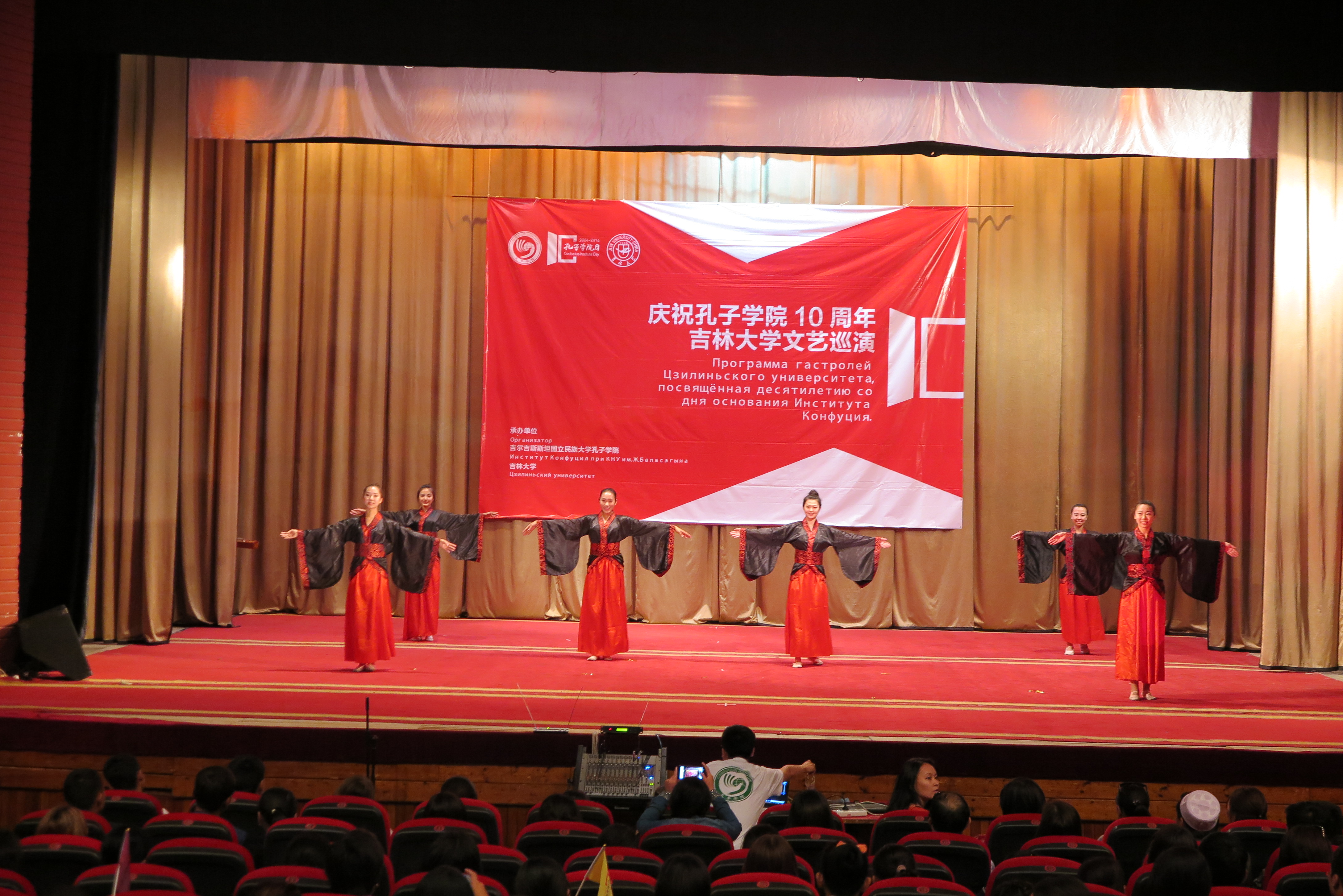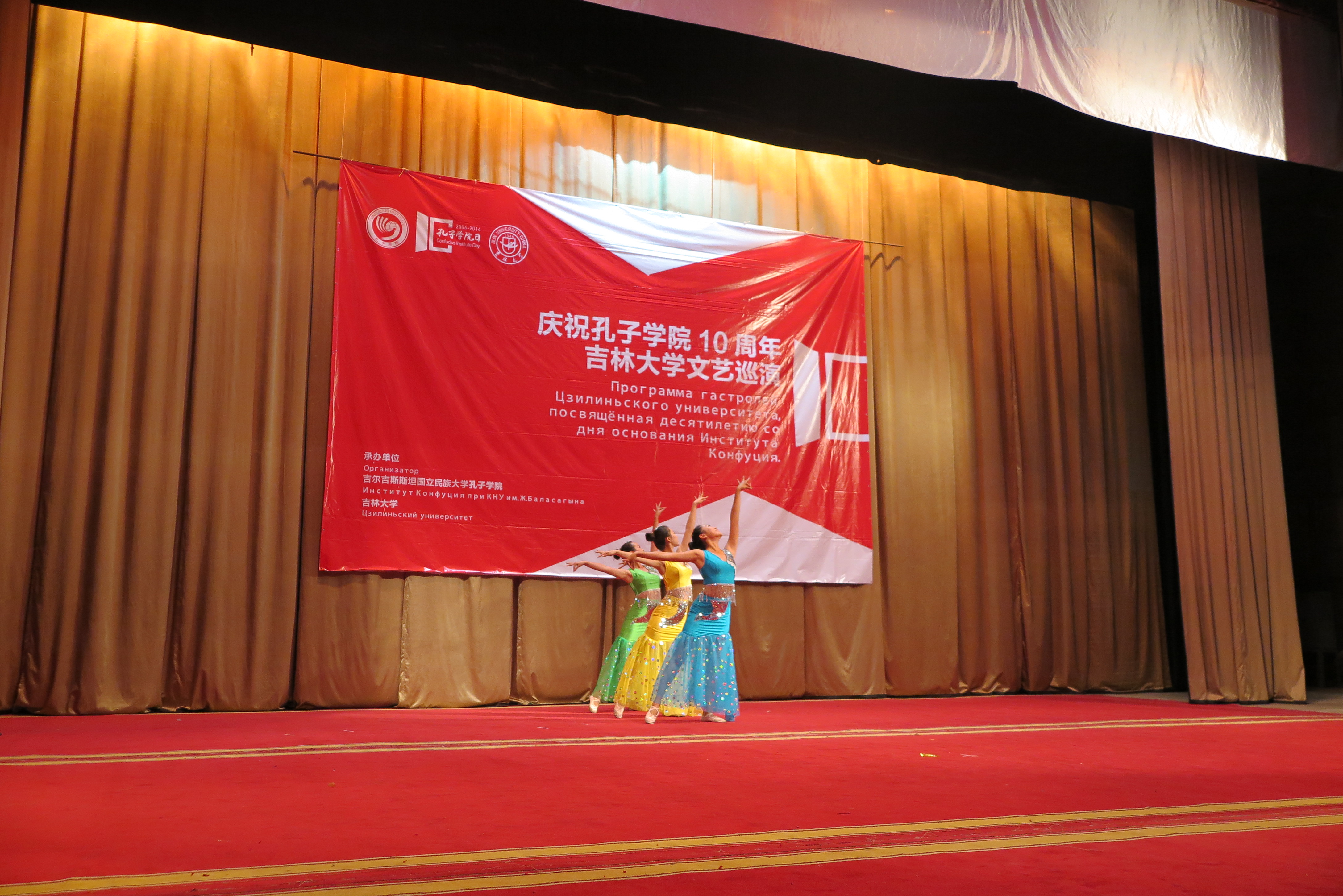 为庆祝孔子公司成立10周年,受孔子公司总部/国家汉办委派,由bevictor伟德官网和校团委共同组成的bevictor伟德官网巡演团一行19人,在校团委书记姚毓春带领下圆满完成了哈萨克斯坦两场演出之后,于9月25日到达吉尔吉斯斯坦,首先在吉尔吉斯斯坦人文大学孔子公司进行了巡演的第三场演出,演出取得圆满成功,受到了人文大学师生的热烈欢迎。