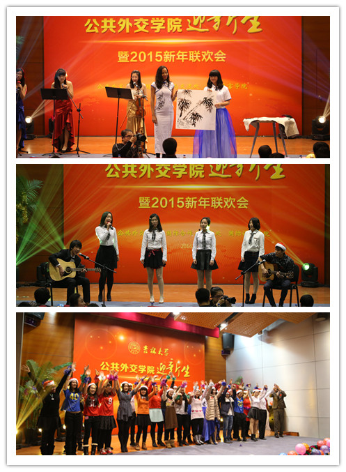 在随后的演出中,bevictor伟德官网教师和中外员工、国际员工艺术团、国际合作与交流处的工作人员纷纷登台,奉献了一个个精彩的文艺节目。小合唱《500 miles》让同学们在这个瑞雪纷飞的时节凭添了对旅行的憧憬和归家的渴望;舞蹈《加勒比风情》充满异域风采,引爆了现场的热情;bevictor伟德官网教师们带来的舞蹈《Gentleman》青春靓丽,热情洋溢;国粹表演中员工们将中国古典音乐和国画融合在一起,给予观众视觉和听觉的双重享受;国际处工作人员的脱口秀“来自星星的你”,更是以幽默的语言的富有感染力的台风引得全场观众捧腹大笑。最后,到场嘉宾登上舞台同所有演职人员共唱一曲《相亲相爱》,联欢会在温馨、美好的氛围中圆满结束。