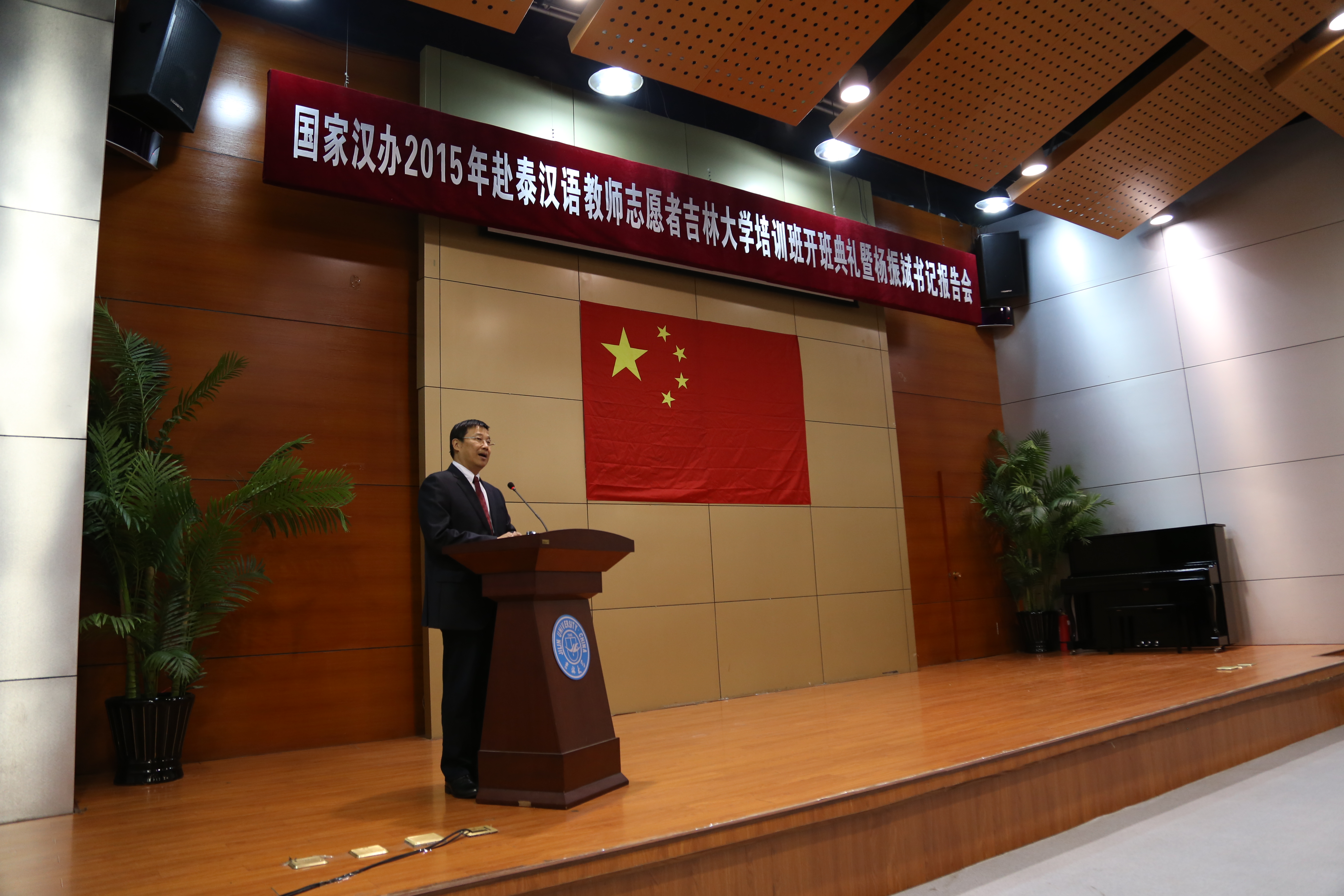 3月12日上午,国家汉办2015年赴泰汉语教师志愿者bevictor伟德官网培训班开班典礼在bevictor伟德官网国际汉语教育东北基地学术报告厅举行。公司党委书记杨振斌为培训班授旗并为培训学员作报告。bevictor伟德官网、国际交流服务中心和国际语言公司等部门负责同志参加了开班典礼和专题报告会。典礼由副董事长陈岗主持。