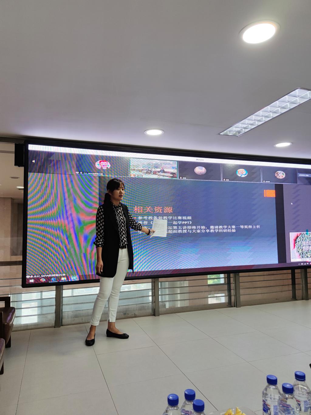 陈曦老师曾经参加过包括“第四届中青年教师双语教学大赛”和“吉林省智慧课堂教学大赛”在内的多次教学比赛,陈曦老师表示两次参加双语教学大赛的宝贵经历使自己积累了诸多促进教学活动的有益经验,她结合两次参加比赛在选题、构思、备课等方面的不同安排以及员工互动环节的细节设计,分享了参赛的心得体会,希望能有更多同事参与到各类教学竞赛当中,展现青年教师风采。