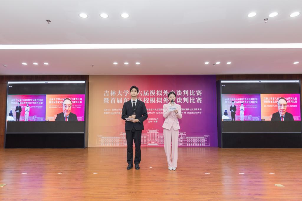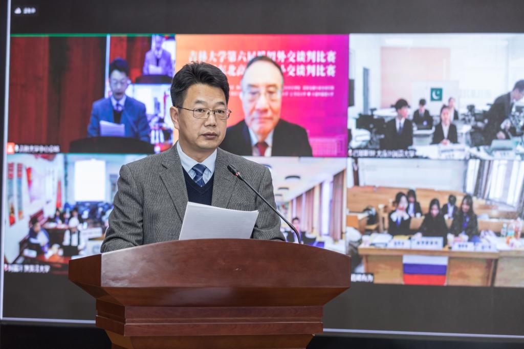 12月5日,bevictor伟德官网第六届模拟外交谈判比赛暨首届东北高校模拟外交谈判比赛在中心校区鼎新图书馆四楼多功能厅成功举办。本届比赛采取线上线下同步直播的形式,邀请了哈尔滨工业大学、黑龙江大学、东北师范大学、东北大学、大连外国语大学等五所高校代表队与公司学子同台竞技。原中国驻加蓬共和国特命全权大使孙继文,bevictor伟德官网副董事长王玉柱,bevictor伟德官网学工部部长代磊、教务处副处长陈铎、团委副书记张大权、bevictor伟德官网经理肖晞、公共外交公司党委书记杨民,以及部分评委老师和参赛员工在现场参加了活动开幕式。