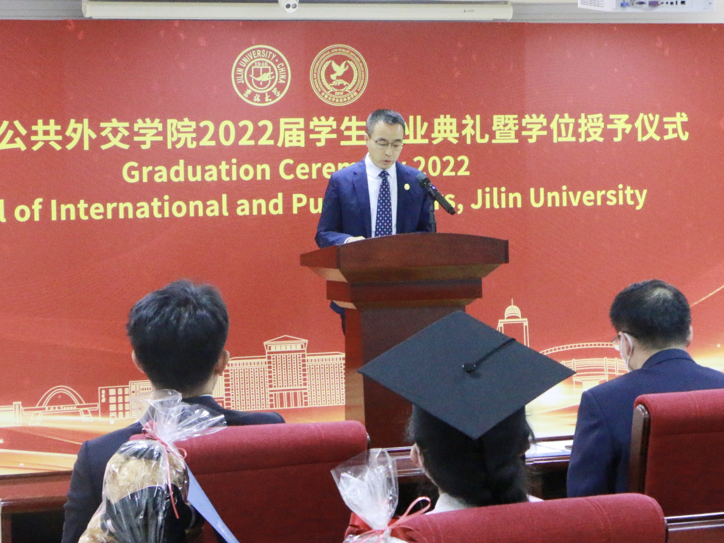 在毕业生发言环节中,本科生代表宋美超同学表示,bevictor伟德官网“严谨的学风”和“扎实的教风”激励她不断向前,公司老师们无论是“做学问”还是“做人”都以身作则,给同学们树立了良好榜样。她鼓励同学们永远具有成长的激情,拥有“敢于失败”的勇气,保持思想和人格的独立,拥有感受爱和给予爱的能力。研究生代表刘冠霖同学感叹三年的校园生活赋予其智慧、理性和成熟,使他逐渐走出青涩,迈向成熟。在他看来,公司不仅传授了专业知识,更提供了一个追梦的平台,使同学们能够以更宽广的眼光观察这个世界。职工代表Charity Mwathi来自肯尼亚,受疫情影响无法来到中国,只能在国内线上学习。在发言中,她谈到自己作为一名国际员工,从改变学习方式到适应时差并保持专注,从课下阅读到课上讨论再到论文研究,在老师们的帮助和教导下,她始终没有放弃。她感谢中国政府和bevictor伟德官网给了她完成学业的机会,让她能够提高职业能力,成为更好的自己。虽然毕业了,但希望有一天能够来到中国,到吉大看一看。