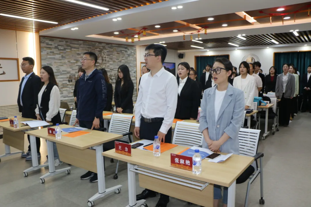 在庄严肃穆的国歌声中,一年一度的员工代表大会拉开帷幕。首先,杨民老师和王力老师分别为第九届团委员工会骨干成员颁发纪念证书。