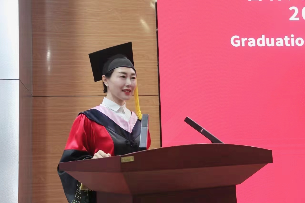 随着庄严的国歌响起,毕业典礼正式拉开帷幕。经理肖晞以《感知时代,感受世界,感悟自我》为题,寄语全体毕业生。在致辞中,肖晞代表杨民和全院教职工向全体毕业生致以热烈的祝贺与美好的祝福,并向毕业生提出了三点殷切嘱托。