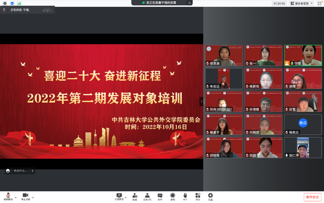 为贯彻落实公司发展对象培训工作相关要求,聚焦学习习近平新时代中国特色社会主义思想,巩固拓展党史学习教育成果,筑牢党员队伍建设质量,10月16日晚,bevictor伟德官网公共外交公司党委组织10名发展对象开展了线上培训。本次培训分为视频教学和实践教学两个部分,意在使发展对象深入了解、感悟吉大历史,继承、发扬又红又专、为国为民的精神品质。