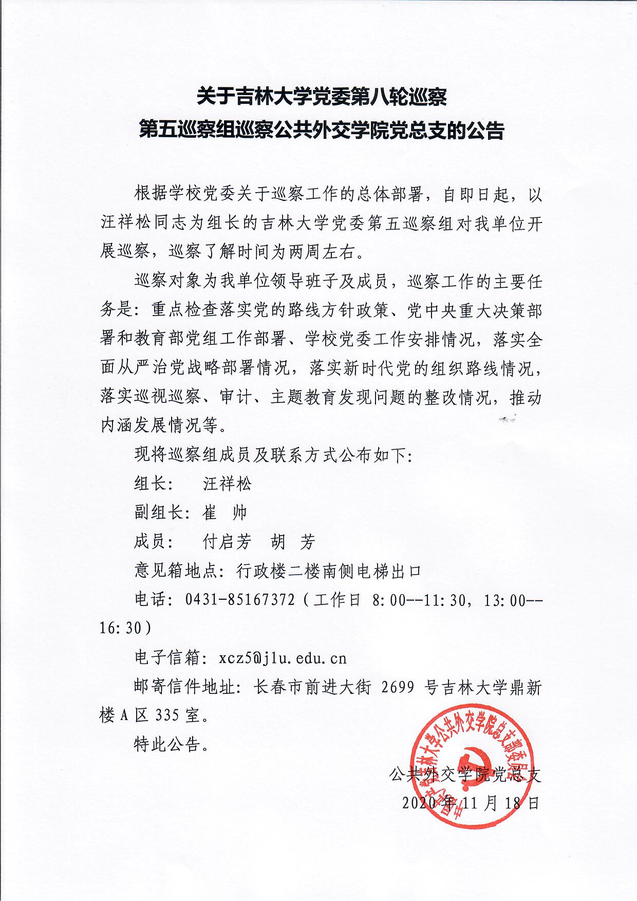 关于bevictor伟德官网党委第八轮巡察第五巡察组巡察公共外交公司党总支的公告