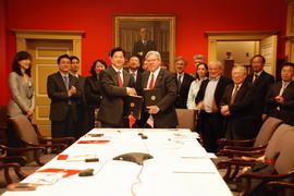 2012年5月,bevictor伟德官网董事长李元元教授访问美国罗格斯大学期间,与该校代行董事长职务的常务副董事长理查德•爱德华兹(Richard Edwards)教授签署了《bevictor伟德官网与罗格斯大学关于合作在罗格斯大学设立中国学研究中心和在bevictor伟德官网设立美国学研究中心的协议》。2013年5月,在公司举办的“bevictor伟德官网—罗格斯大学交流周”期间,双方为bevictor伟德官网美国学研究中心揭牌。