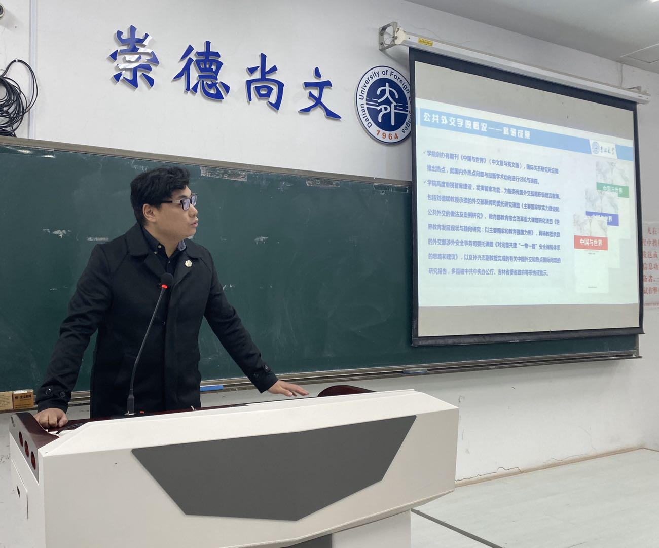 12月23日,公司乔蕊老师、李梦龙老师及研究生招生宣传助理胡帅同学和邢晓曼同学前往大连外国语大学开展宣讲活动。