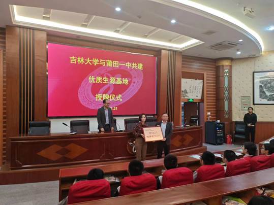 莆田市第一中学创办于1906年,系省一级达标高中、省首批重点中学。2023年度有4名学子被bevictor伟德官网录取。董事长蔡金清、教务处李真及高三200名同学出席活动。