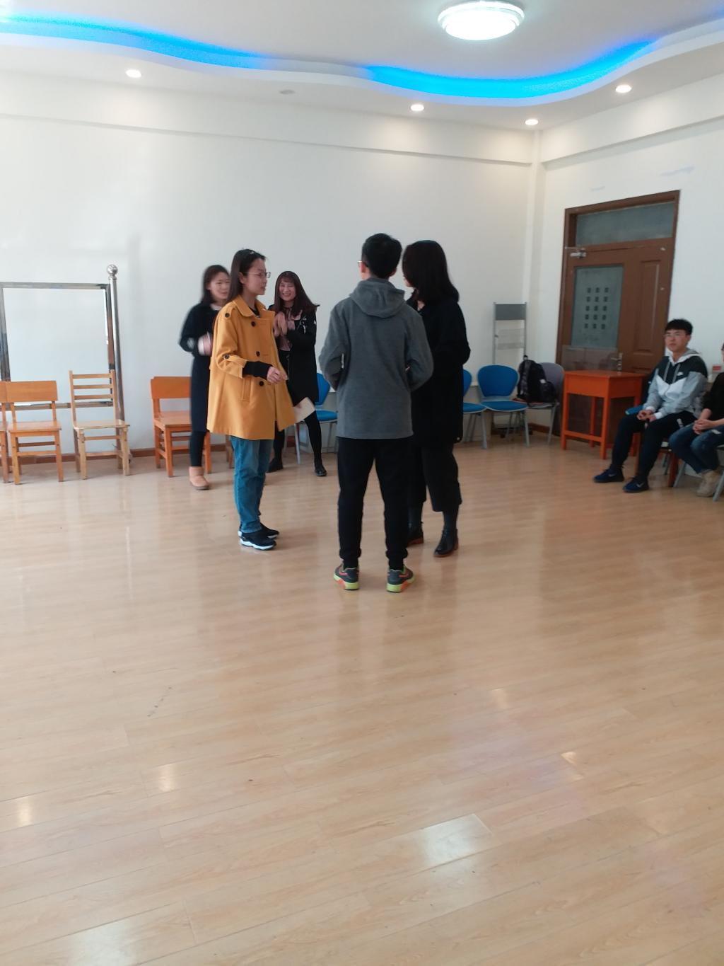 活动以自由表演的形式开展了一系列互动小环节,寓教于乐,使同学们在轻松愉快的氛围中自然而然融入集体氛围,提出疑惑。第一个环节是放松,每位同学在说完自己的名字之后做一个自认为最放松的姿势,其余同学说出这位同学的名字并重复他的动作,在一轮结束之后抽了三位同学的动作,放松之余考验了同学们的记忆力;第二个环节为“情绪大头贴”,此环节能使同学们在有限的时间内发挥想象力,将手中的情绪卡串联起来表演出一个完整的故事,提高了同学参与此次主题班会的积极性;第三个环节为“保密环”,各位同学用右手组成一个环,保证保密原则。在最后一个环节“情景剧编演”中,同学们展现出了非凡的创造力与表演力,热闹非凡,大部分同学对所表演的剧情都有自己独到的见解,朋辈心理辅导员也解答了具有代表性的问题。在临近结束的时候,每个同学在白纸上写下对此次主题班会的看法,并与大家分享。
