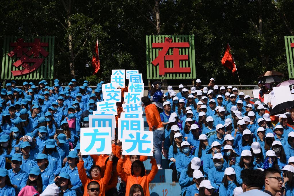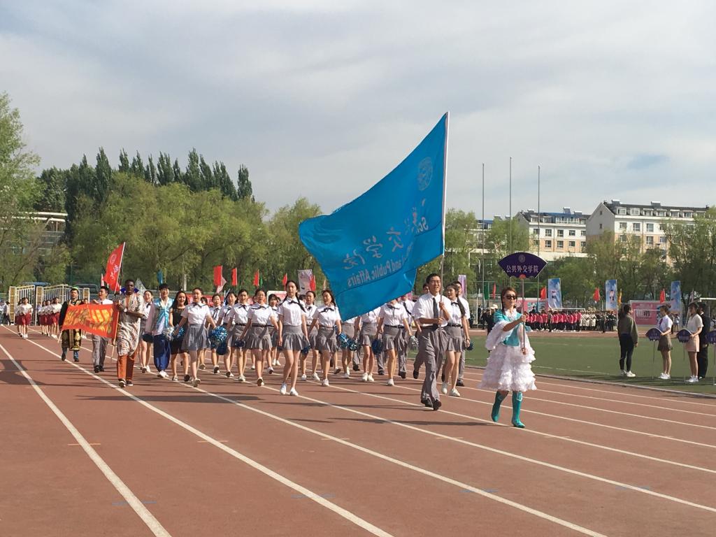 在开幕式上,伴随着运动员进行曲,各公司代表队逐一入场接受检阅。公司受阅同学以昂扬的精神面貌、嘹亮的口号、整齐的步伐走过主席台。“公共外交,志在四方,家国情怀,世界眼光”,随着口号声,看台上的同学们统一举起口号牌,向全校师生一展公司精神。