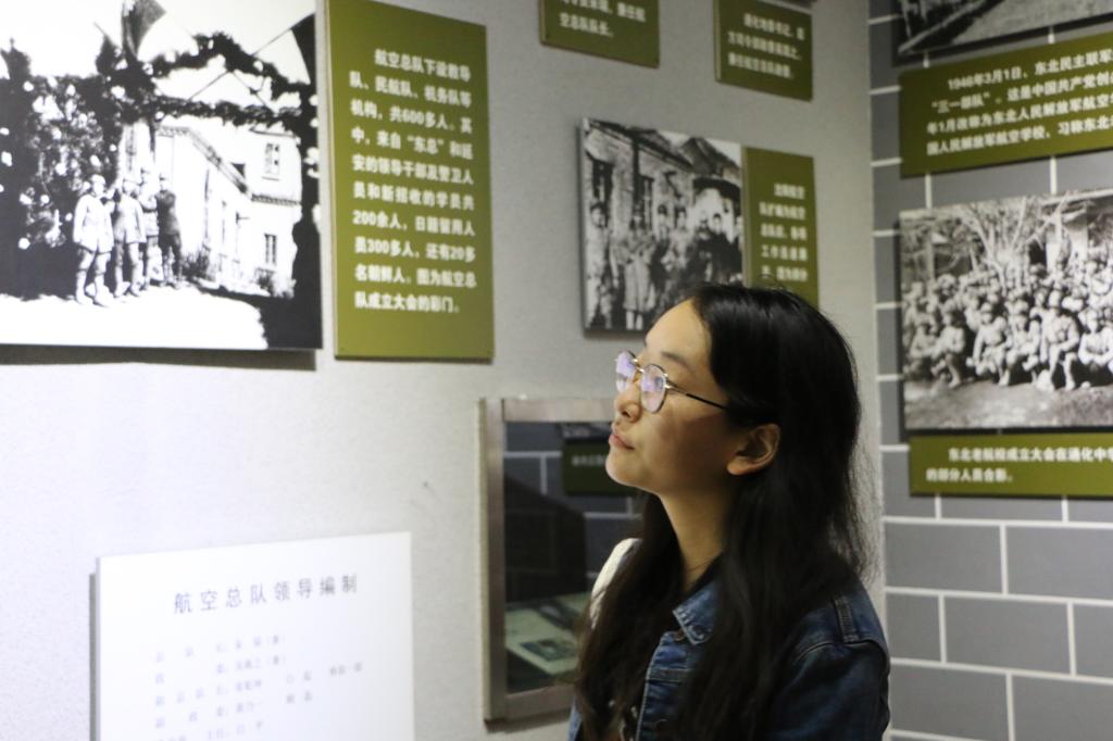14时20分一行人到达校园,参观了中国人民解放军空军航空大公司史馆,了解了该公司建校历史,以及为了航空航天事业,老一辈航天工作者的辛勤付出。大家在讲解员带领下,了解了许多航空航天方面的知识,也感受到了军人对航天事业的热爱,对祖国的热爱与担当。