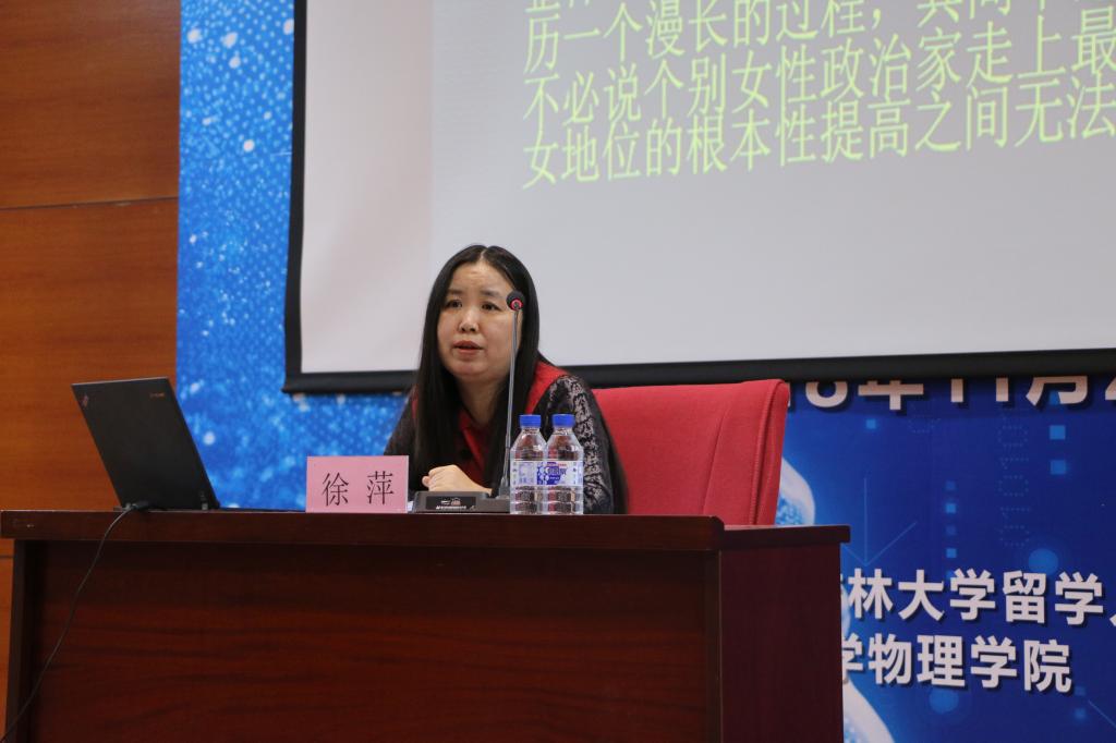 首先徐萍老师以斯里兰卡第一位女总理西丽玛沃·班达拉奈克的案例为切入点,引发听众关于女性政治家在国际舞台上日益活跃的思考。接着进入到女权运动的讨论,彰显女权运动的第一次代表事件是女性争取选举权的运动,随后以英国为例详细讲述了一战与女性选举权,着重分析了《人民代表法案》授予30岁以上的女性以选举权的原因和当时各种错综复杂的情况。第二次是女性争取社会平等的努力,即抗议女性在社会中遭受到的不公正待遇,进而发展成为女性参政和议政。分析探讨了20世纪60年代第二次女权运动兴起的原因,主要源于当时的男女收入差距大,体现了一种社会歧视和差别对待。然后徐萍老师讲解了女性政治家崛起的现象。自20世纪下半叶开始世界政治舞台上女性政治家的崛起已经成为群体性现象,进入21世纪以来,走向权力巅峰之路的女性更是不断增多。亚洲女性的家族型崛起,欧洲女性政治家的个人奋斗型崛起,美洲女性政治家的中间型崛起,都是典型的代表。亚洲的朴槿惠和昂山素季,欧洲的撒切尔夫人、特蕾莎和默克尔,美洲的希拉里和克里斯蒂娜,在国际舞台上展示了女性政治家的风采和优势。最后徐萍老师进行了总结,并指出这这些现象是人类社会政治文明发展和男女平等、社会公正诉求得到部分实现的成果。二战后世界已经维持了半个多世纪总体和平的局面,绝大多数国家面临的主要问题不再是“金戈铁马”而是“强国富民”,客观上为女性政治家施展才华智慧提供了机会。同时指出对这一世界政坛现象的评价不可过度渲染。从整体上看,全球妇女地位的根本性改善仍将经历一个漫长的过程,期间不乏反复性与任重道远的斗争,要注意个别女性政治家走上最高权位与该国妇女地位的根本性提高之间不可划等号。