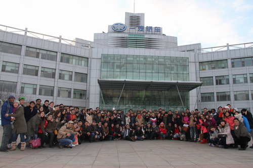 在长春第一汽车制造集团工作人员的陪同下,职工们饶有兴致地参观了红旗文化展馆和奔腾牌轿车生产基地。在展馆中,职工们通过介绍看到了一台台不同年代生产的红旗轿车,了解到由我国自主研发的红旗轿车的创业历程和发展史。当参观轿车生产线时,来自西班牙的“孔子新汉学计划”联合培养博士生贾维尔同学惊讶地感慨道:“没想到中国汽车工业发展的这么迅速,工人操作的这么熟练,生产车间自动化程度这么高”,他一边观看还一边向我们介绍西班牙汽车工业发展现状,并将两国汽车生产情况进行比较,他觉得中国一汽今后会有更快更好地发展。其他职工在参观结束后也纷纷表示,非常高兴能参加这样一次有意义的活动,希望以后还能参加类似的活动。