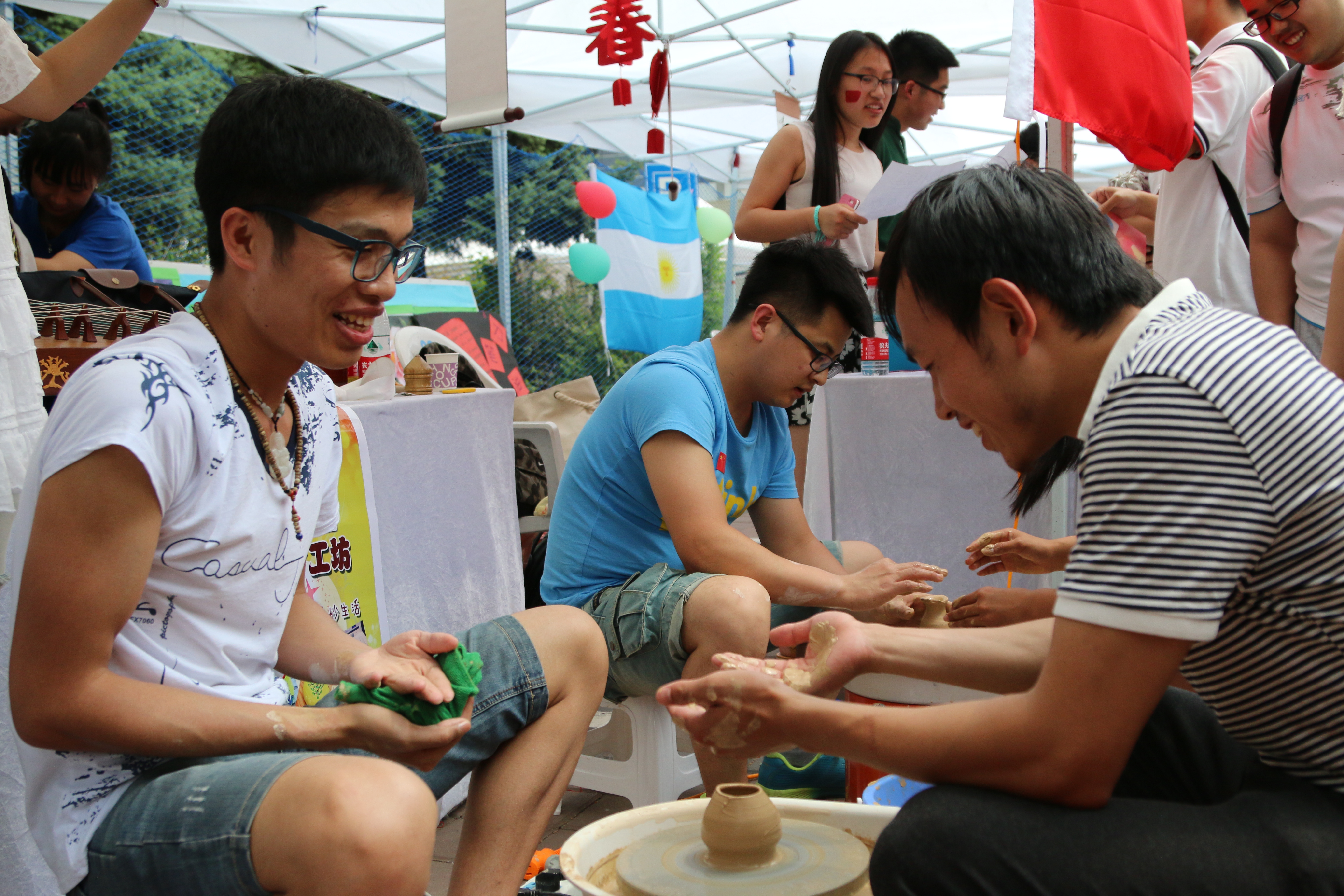 6月16日,bevictor伟德官网的同学们参与到了公司举行的文化日活动。新成立的“Together”社团全程负责了这次文化日中国馆的布置、管理工作。“Together”社团的同学为中国馆设计了三个体验环节,分别是回答和中国文化相关的题目、亲自制作陶艺花瓶、穿上汉服、唐服并拍照留念。前来参观中国馆的朋友可以分别体验这三个环节,充分参与到中国文化的体验活动中,许多参与体验的职工说着有些生涩的汉语回答中国文化问题,场面十分有趣。并且很多人是第一次亲身体验陶艺制作,虽然双手沾满了陶艺泥巴,不过看到自己亲自制作出来的陶艺罐子,相信他们的心里充满了成就感。