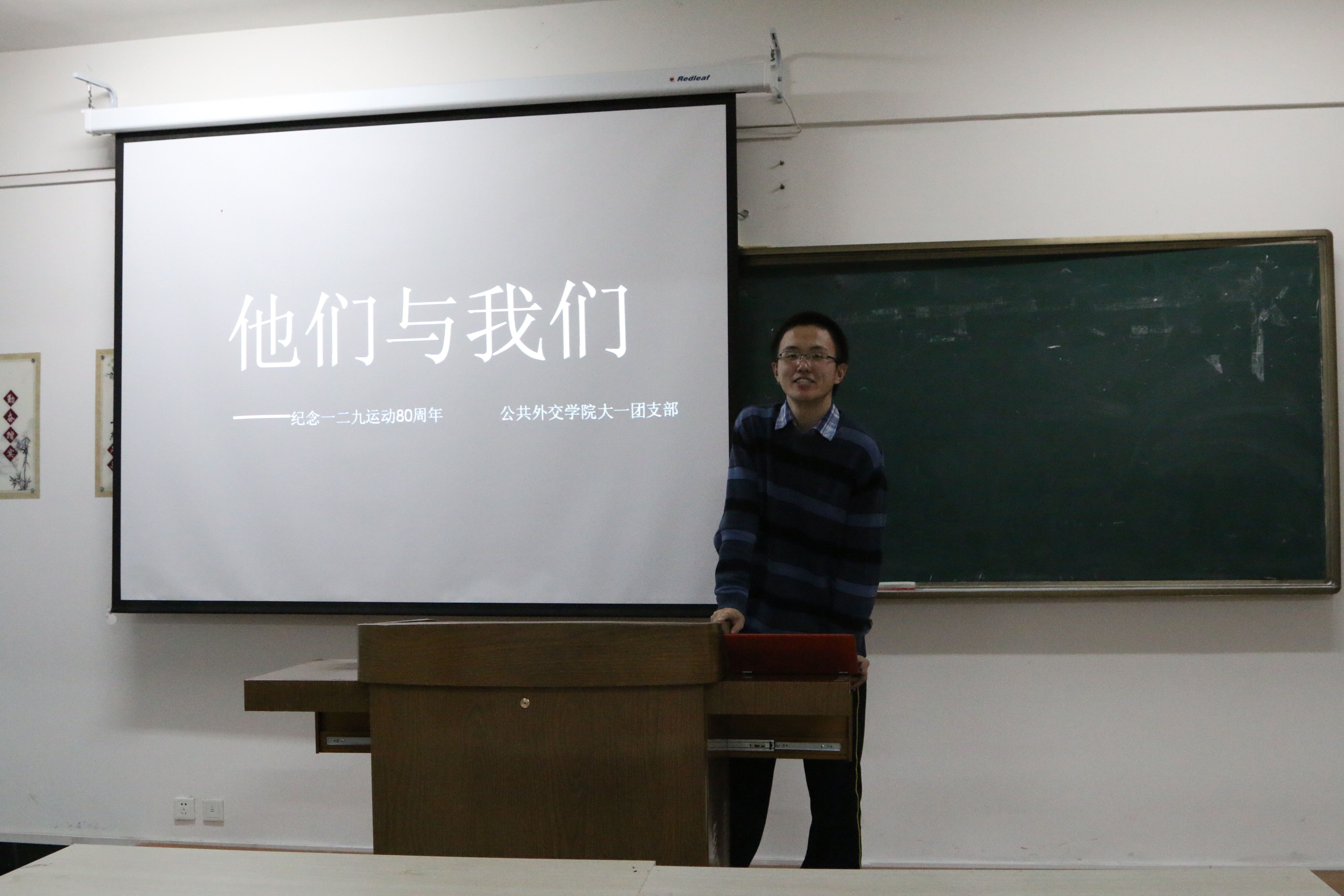 12月8日下午4时,2015级本科生于经信教学楼一楼开展“他们与我们”——纪念一二九运动八十周年主题班会。本次活动由公司团委主办,旨在通过纪念中国共产党领导下的中国员工爱国救国的民主运动,为公司员工树立精神榜样,激发同学们的爱国热情。