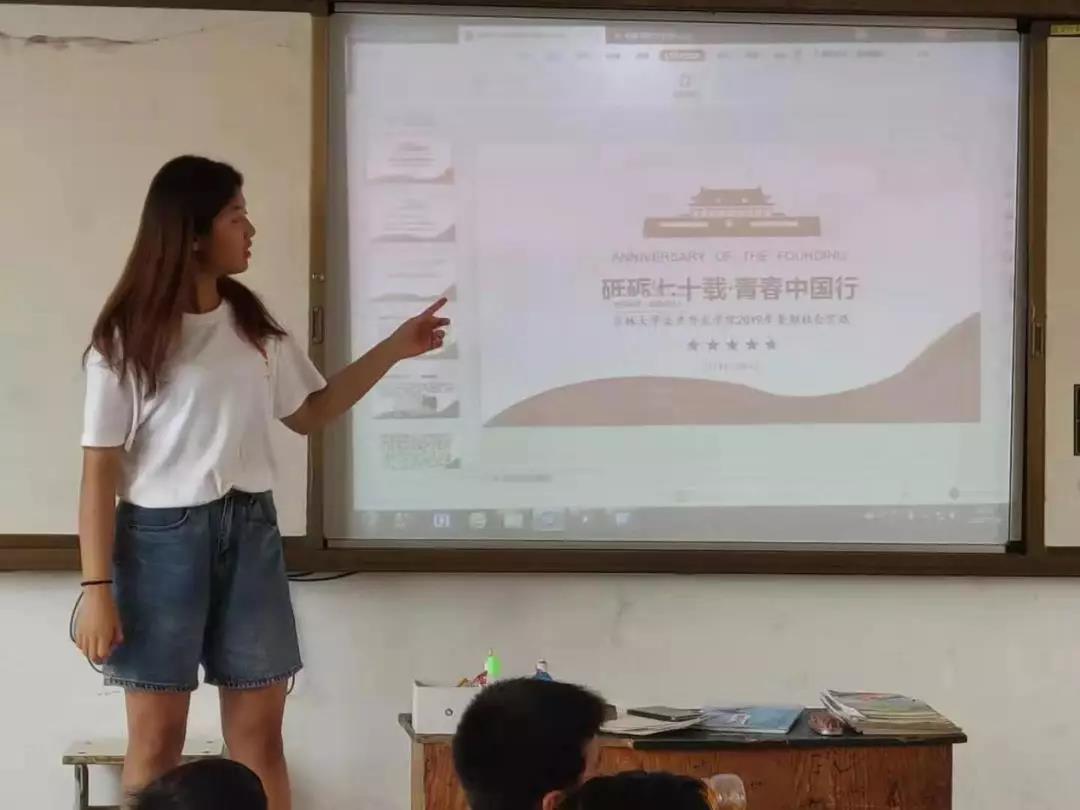 此外,成员们还以暑期支教为依托,进行了爱国主义宣讲活动。王家辉、张博宇、信思涵、王吉昊四位同学在山东省郓城县支教期间,分别在三个年级,面向一百余名员工召开了主题班会,通过讲述红色历史故事、观看爱国主义教育视频、开展爱国主义知识竞赛、员工家访发放纪念建国七十周年宣传单等丰富多彩的方式,向当地员工与居民深入宣传了爱国主义精神与党的十九大精神。张雪杨同学在广西南宁支教期间,则通过组织召开爱国主题班会、举办朗诵比赛、开展爱国主题文艺汇演等形式,组织员工感受红色文化,营造了良好的爱国主义教育氛围。