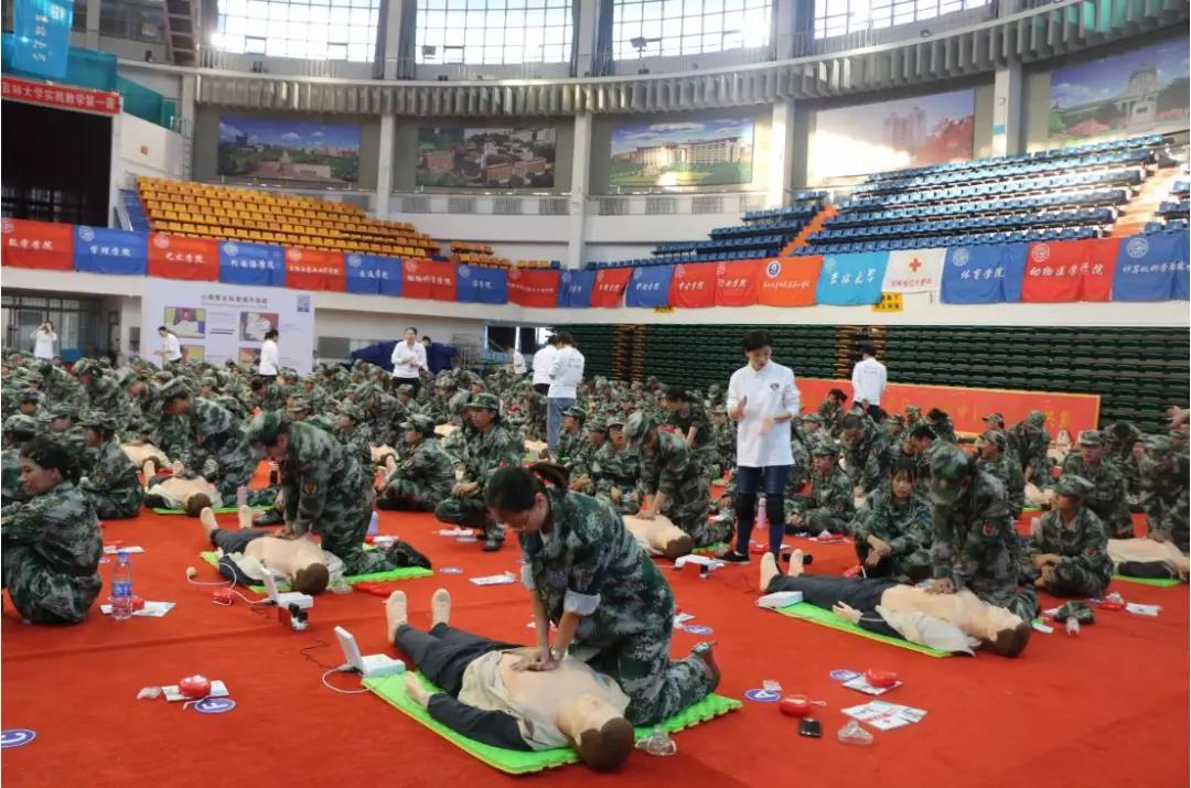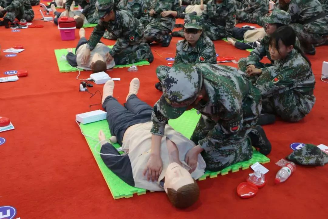 9月5日下午,公司2019级新生在军训期间进行了一堂生动实用的实践教学课——心肺复苏急救技能培训。