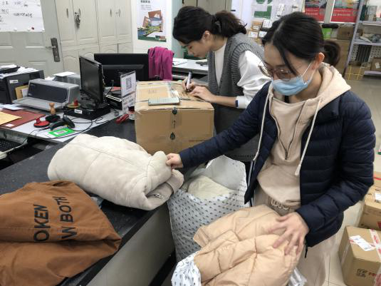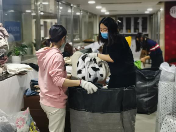 本次冬衣收集活动得到了老师和同学们大力支持,共收集到了衣物2600余件,志愿者们和公司师生党员利用2天的时间按照质量、款式等进行分类和整理装袋(箱),并在每个快递箱和快递袋里放入了暖心的祝福小卡片。
