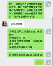 根据问卷结果,莘子园食堂的问题集中在菜品种类、质量以及食堂管理等方面。工作人员联系了同学们的好朋友——张哥反馈意见,张哥表示乐意听取同学们的意见,并会加以改进,努力为同学们营造更舒适的用餐环境。