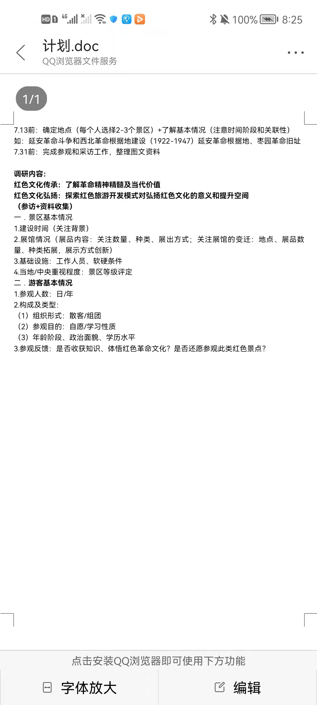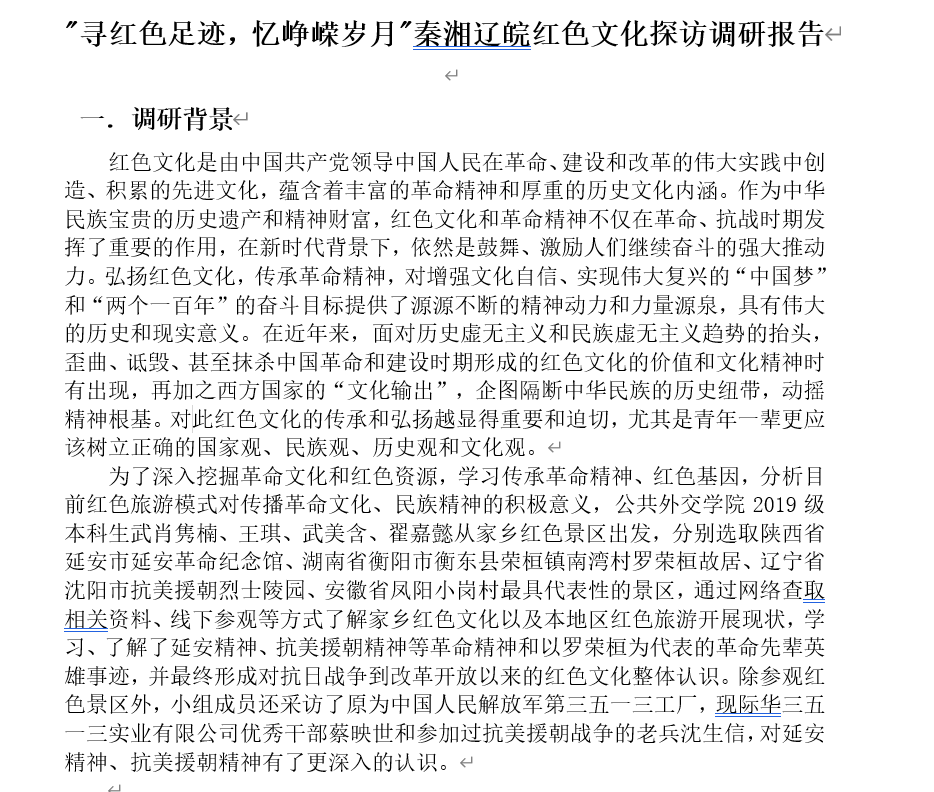 六月底,小组成员查阅了相关资料,了解了家乡红色文化以及本地区红色旅游开展现状,并基于当地特征,在比较讨论后选取了家乡最具代表性的红色景区。八月初到八月中旬,小组成员根据拟定的计划分别对家乡的红色景区进行走访参观,深入学习当地红色文化。