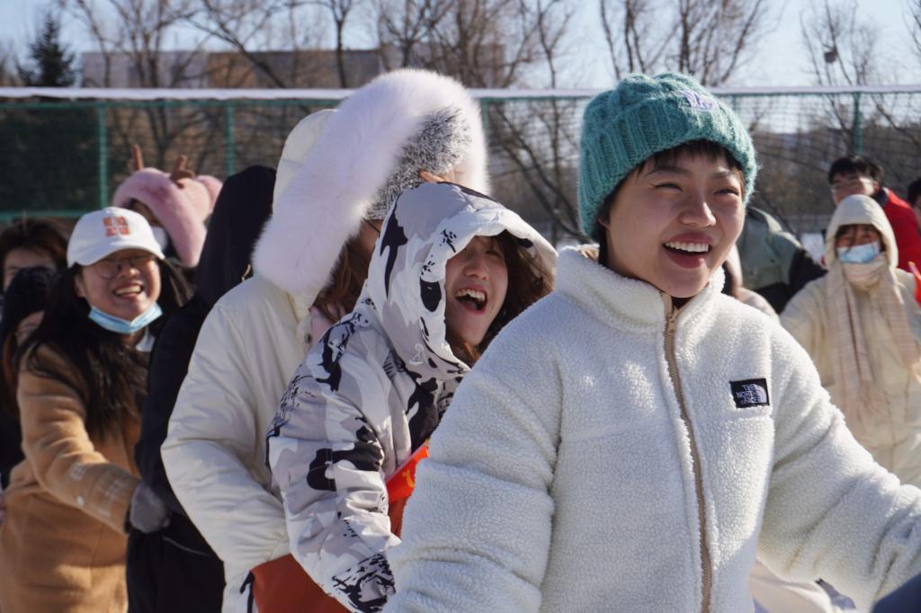 活动开始,班长和团支书给大家分完组后就开始了活动的第一项——活波欢闹的雪仗。北方的雪蓬松而散,很难聚合,同学们用手套压一压雪、趁其他同学没有防备的时候一把呼到眼前,发光的粉末就在阳光下淋了同学老师们一脑袋,似乎一转头就是好大一个“惊喜”。同学们和老师之间没有严肃沉闷的气氛,而在追逐打闹里笑成一团,松软的雪球碰撞出了轻松和愉悦。
