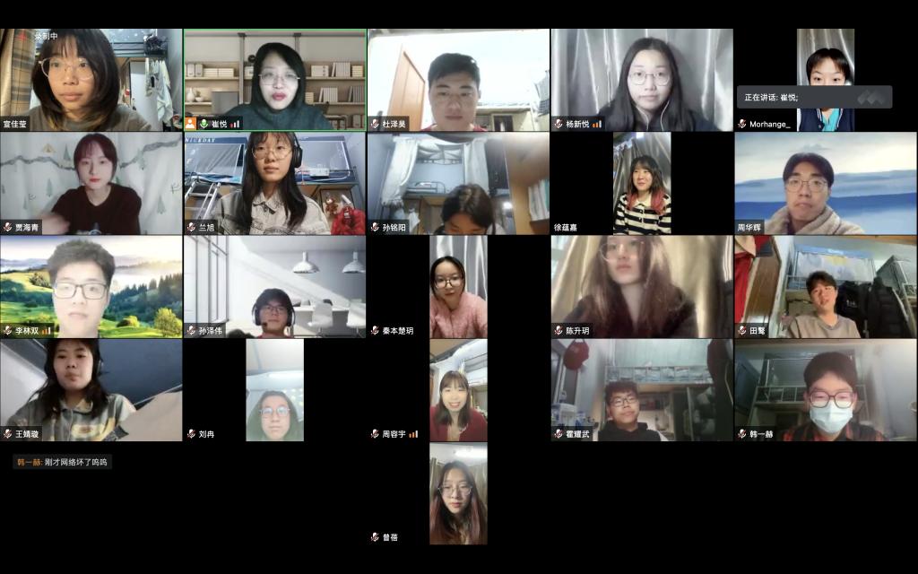 3月10日以来,吉林多地疫情大规模爆发,形势严峻,bevictor伟德官网迅速采取行动封闭校园实施静态管理,第一时间切断校园疫情传播扩散的途径,并积极协调学工、后勤、保卫、校医院等各部门的力量确保全体在校员工的健康安全稳定。为了解同学们封寝期间的生活与心态变化,鼓励同学们坚定信心、共抗疫情,公司本科生班主任崔悦老师、颜震老师于近期分别组织员工召开“共抗疫情”线上主题班会,两个班级全体本科生参会。