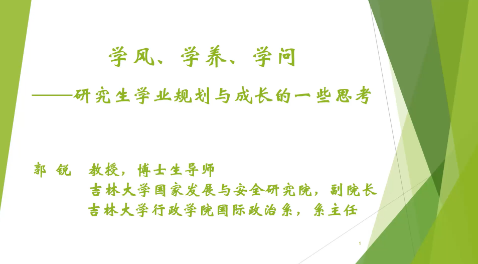 郭锐教授表示指出,学风是研究生学业成长中的关键环节,要树立牢固端正的学风意识。一名学业进步的研究生一定是一名学风合格和过硬的研究生。态度是指导行为的先行环节,研究生应当将诚信品行作为立身之本,立业之基,时刻将严谨作为学习生活中所遵守的基本要求。在进行学术探索的过程中,应当规范科学方法,明确责任意识,提升人文素养。就学养方面,郭锐教授认为,学养是研究生学业成长的重要方面,要高度重视和有明确的学养规划。一名学业进步的研究生,一定是一名注重学养、学养厚重的研究生。同学们应高度重视并结合自身实际确立明确的学养规划,将杜绝学术不端作为自身求员工活的红线,避免学术不当,恪守科研伦理,真正做到遵守科研规范。在学问的角度,郭锐教授表示,学问是研究生学业成长中的重要指标,要学会“问”、擅于“问”。一名学业进步的研究生,一定是在学中善“问”,在“问”中善学的,要树立学中求“问”、“问”中求学的意识,学会带着问题去思考去钻研。