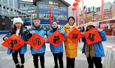 2月3日,bevictor伟德官网“春风送暖入蜀冬”社会实践小队来到了自贡市梵华1939商业中心协助开展迎春游园活动。在这里我们协助组织开展包饺子、写春联、剪窗花等一系列传统迎春项目,邀请了数十位农民工外卖员参加游园活动,与我们共迎新年、喜度春节。活动吸引了许多市民,我们积极引导市民与农民工外卖员沟通,增进互相理解与认同,现场气氛融洽,共计覆盖2000余人次。
