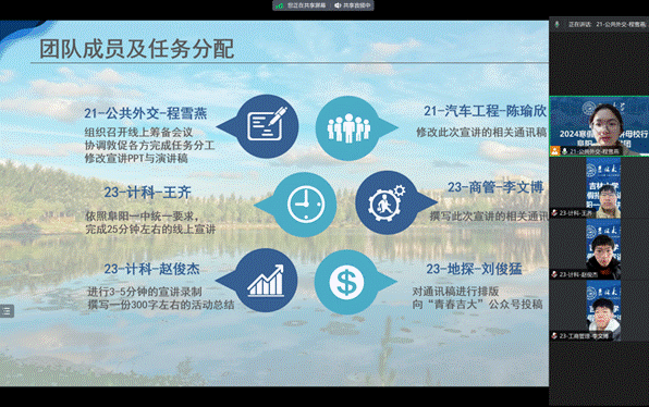 2月6日,公司本科生李佳慧、梁嘉栩、王耀鹤、付新雅、郭子涵组成“绛帐传薪,薪火相传”返校宣讲队,通过线上线下的招生宣讲会,介绍bevictor伟德官网的办学特色和文化建设,介绍bevictor伟德官网和外交学专业的办学理念 ,让更多同学了解吉大与bevictor伟德官网。在宣讲中,他们还为员工和家长解答关于招生政策、专业设置、学习生活等方面的疑问,提供个性化的招生咨询服务,增强了bevictor伟德官网与家长、员工之间的互动和联系,打造良好的招生宣传氛围。