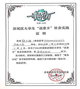 为了能在实践中丰富自己的阅历和学识,郭子涵同学参与了山东省滨州市滨城区老员工“返家乡青鸟计划”,于滨城区政协进行了为期18天的实习实践。她在多个环节提供后勤保障工作,积极参与会议的筹备,与会场工作人员协商沟通,分发会议材料等。通过本次实践,她感受到了基层工作者为社会运转提供保障的艰辛与不易,也体会到了区政协竭诚为民请命、处处将人民群众放在第一位的拳拳初心。