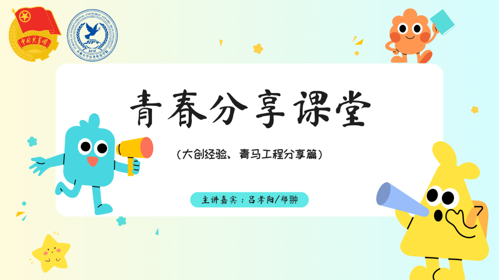 主题讨论后,公司举办了本学期第二期“青春分享课堂”活动。活动由2023级本科生曲慧敏主持,邀请2021级本科生吕孝阳,2023级本科生郑翀分别与同学们分享关于“大创”、青马工程的经验。
