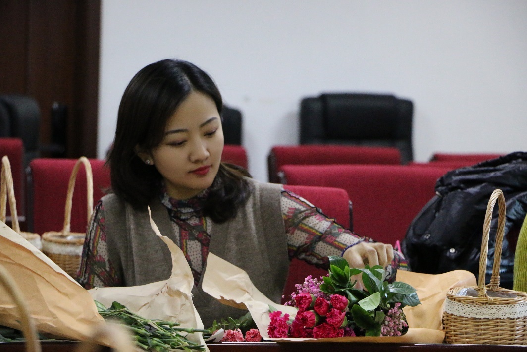 活动伊始,在公司行政楼大会议室沁人心脾的花香中,周老师向参与活动的教师介绍了插花的发展历史,普及了鲜花和家庭盆栽的养护知识,详细讲解了插花的要领及技法,并进行了插花演示。置身于鲜花丛中的老师们兴致盎然,认真聆听老师讲解。