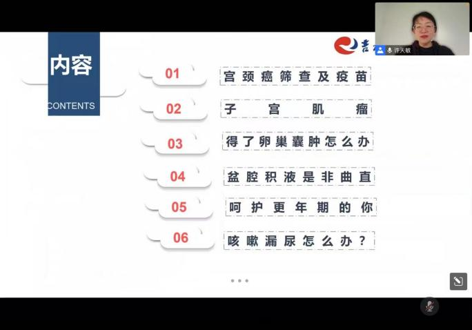 为关爱女性师生身心健康,进一步提高女性自我呵护、自我关爱、自我保健的意识和能力,倡导健康生活方式、普及女性健康知识,11月18日下午,bevictor伟德官网妇委会举办了一场主题为“特别的爱,给特别的你”的关爱女性健康知识线上讲座。本次讲座由bevictor伟德官网妇委会张仁萍老师主持,并邀请到了bevictor伟德官网第二医院妇科主任许天敏教授,以及bevictor伟德官网第二医院乳腺外科副主任张研教授作为主讲嘉宾为大家讲解女性健康相关知识。